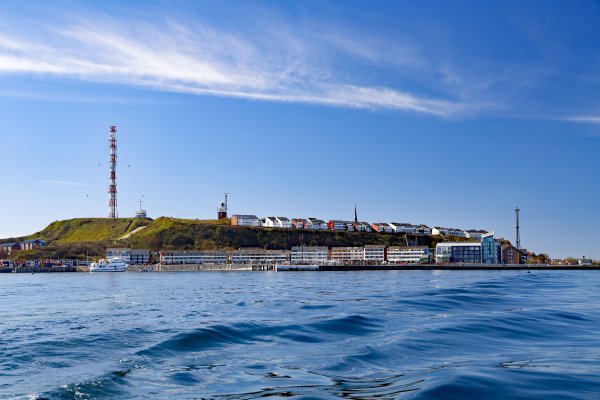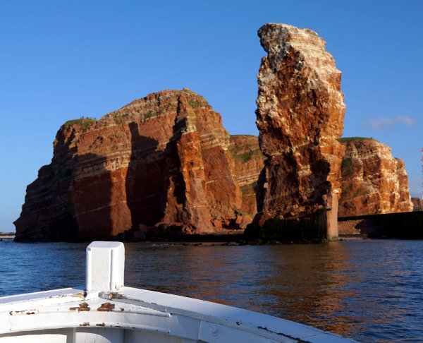 Genau genommen sind es zwei Inseln, die eine, eine 61 Meter hohe Steilküste aus Buntsandsteinfelsen, die andere, eine 0,7 qkm große Sanddüne. Ein Paradies mitten im Meer. Natur pur, klare Luft, sauberstes Wasser, schneeweißer Sand und so viel Sonne, wie kaum anderswo in Deutschland. Eine Oase der Ruhe, Zeit zum Abschalten, Zeit für Entspannung. Der ideale Ort zum Entschleunigen. Die Insel ist eines der begehrtesten Reiseziele Deutschlands und wird jährlich von über 350.000 Gästen besucht. Den meisten von ihnen, den Tagesausflüglern, bleiben nur wenige Stunden die Insel zu erkunden. Ein Muss ist der Inselrundgang, ein 3 Kilometer langer Weg um das „Oberland“, das man entweder zur Fuß über eine 184 Stufen zählende Treppe bewältigt oder mit einem Fahrstuhl erreichen kann. Dort angekommen führt der Weg mit überall freiem Blick auf das weite Meer und den Horizont vorbei an schroffen Felsformationen zum „Lummenfelsen“, einem der kleinsten Naturschutzgebiete Deutschlands. Hier nisten und brüten Seevögel wie Dreizehenmöwen, Basstölpel, Eissturmvögel, Tordalken und Trottellummen, die der Felsen seinen Namen zu verdanken hat. Ziel des Weges ist die „Lange Anna“, eine 46 Meter hoher, alleinstehende Felsnadel, das Wahrzeichen Helgolands. Vom „Oberland“ hat man einen einmaligen Ausblick auf das „Unterland“, die Reede mit den vor Anker liegenden Schiffen, das beheizte Meerwasser-Freischwimmbad „mare frisicum SPA HELGOLAND“, den Hafen und die Nachbarinsel, der „Düne“. Im Halb-Stundentakt bringt die Dünenfähre die Urlauber dort hinüber. An zwei weitläufigen, weißen Sandstränden finden Sonnenhungrige eine ausreichende Anzahl von Strandkörben und viel Platz zum Strandnachbarn. Nie sind diese Strände überlaufen und auch dadurch unvergleichlich.